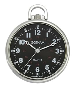Gotham Men' s Silver-Tone Ultra Thin Railroad Open Face Quartz Pocket Watch # GWC15027SBK