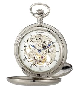 Gotham Men's Silver-Tone Mechanical Pocket Watch with Desktop Stand # GWC18802S-ST