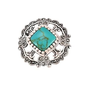 Sterling Silver Marcasite Open Work Synthetic Turquoise Pin